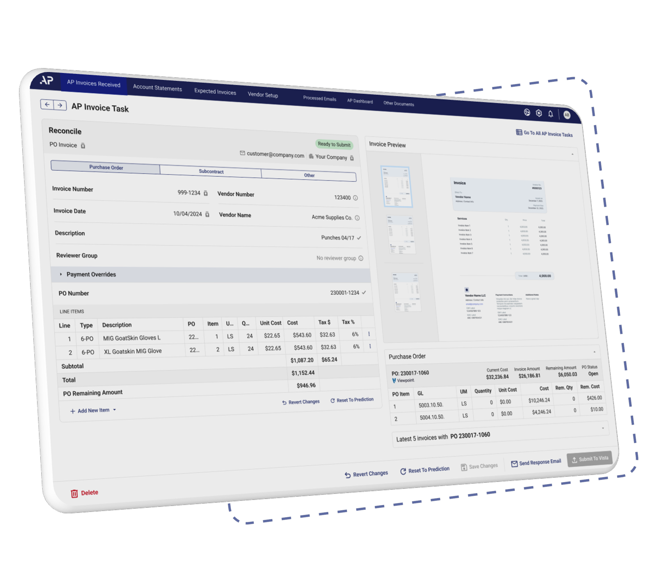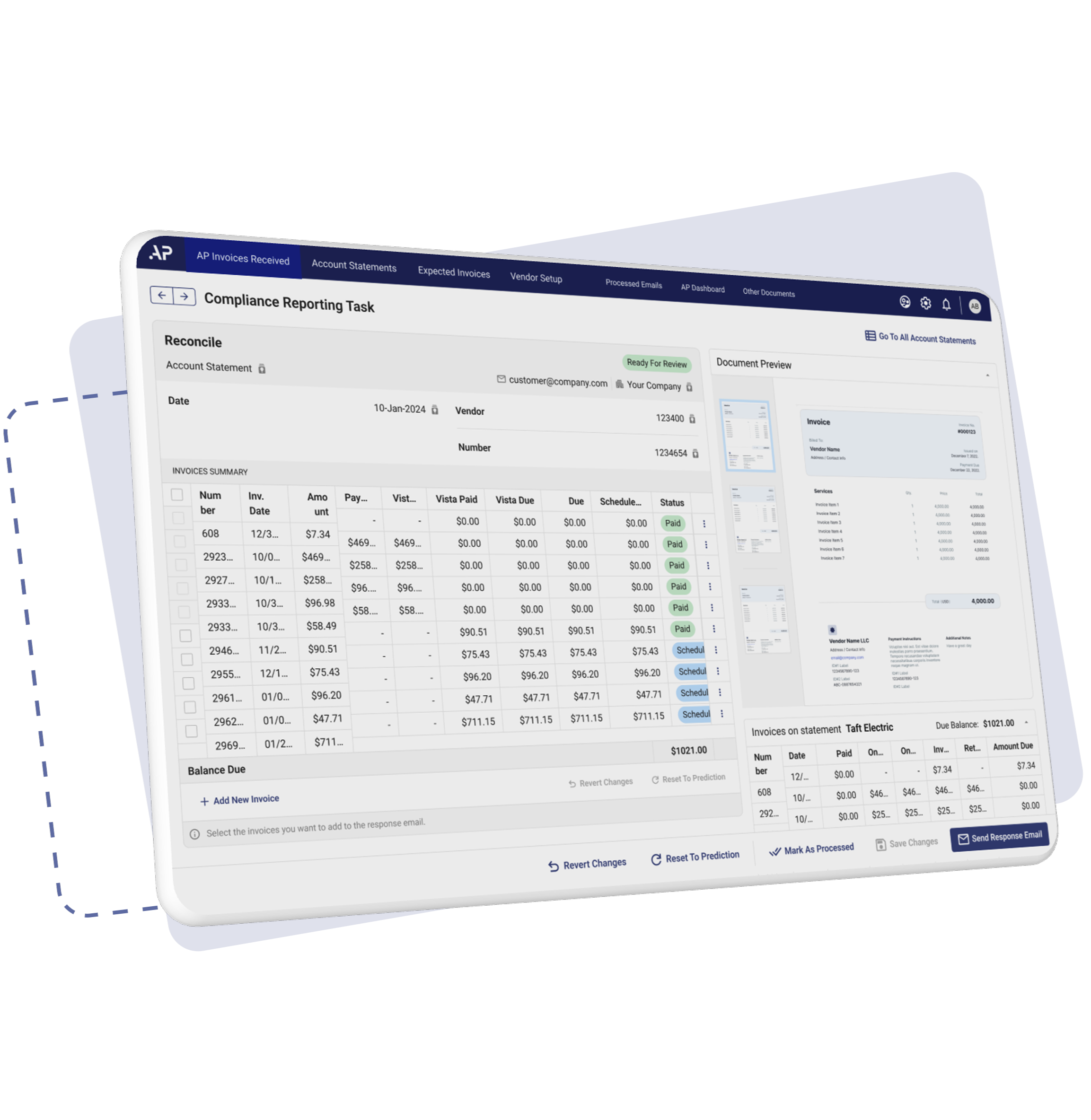 Experience unparalleled efficiency in your Accounts Payable data entry process with our AI-driven application, seamlessly integrated into your existing workflow. By leveraging cutting-edge automation technology, we streamline AP data entry for invoice management and Vendor account statement processing, amongst other related documents, reducing manual labor and eliminating errors. Our advanced AI algorithms, powered by OCR and predictive analytics, ensure swift and accurate execution of tasks, saving you valuable time and resources.