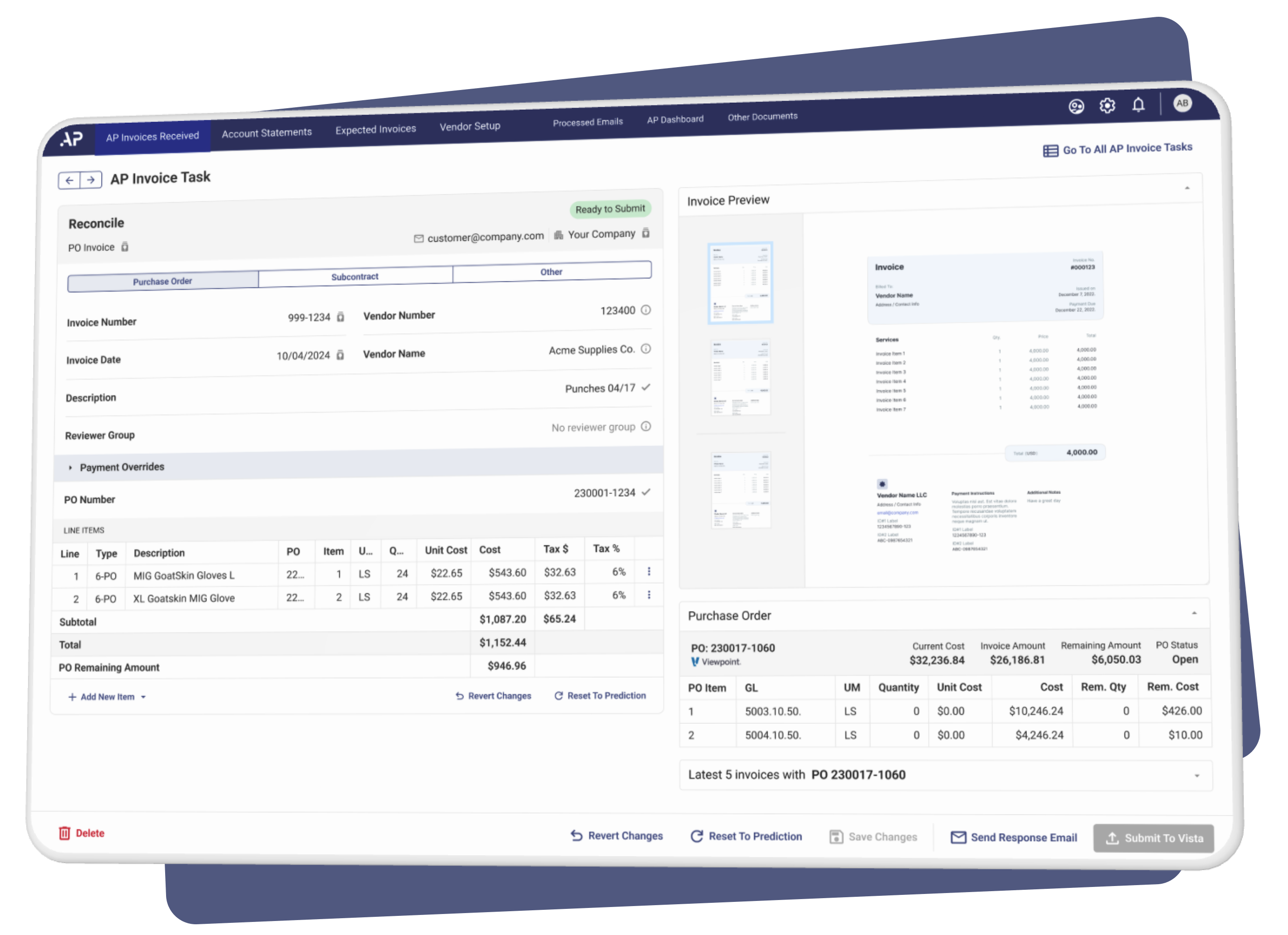 Experience unparalleled efficiency in your Accounts Payable data entry process with our AI-driven application, seamlessly integrated into your existing workflow. By leveraging cutting-edge automation technology, we streamline AP data entry for invoice management and Vendor account statement processing, amongst other related documents, reducing manual labor and eliminating errors. Our advanced AI algorithms, powered by OCR and predictive analytics, ensure swift and accurate execution of tasks, saving you valuable time and resources.